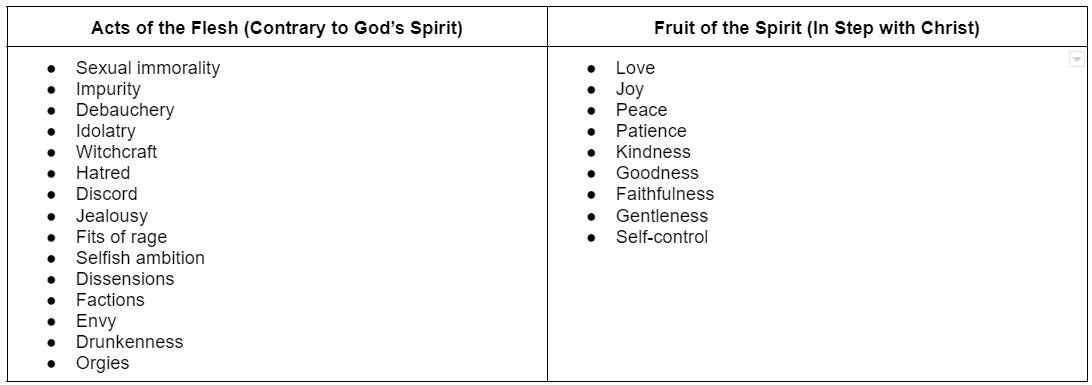 In the New Testament, there is a passage (Galatians 5) in which the apostle Paul sets out two distinct character profiles. One is “of the flesh” and contrary to the Spirit of God. The other is “in step with the Spirit” and demonstrates evidence of Christlikeness. Both are the fruit that is on display for the world to know who is following the ways of Jesus and who is not.